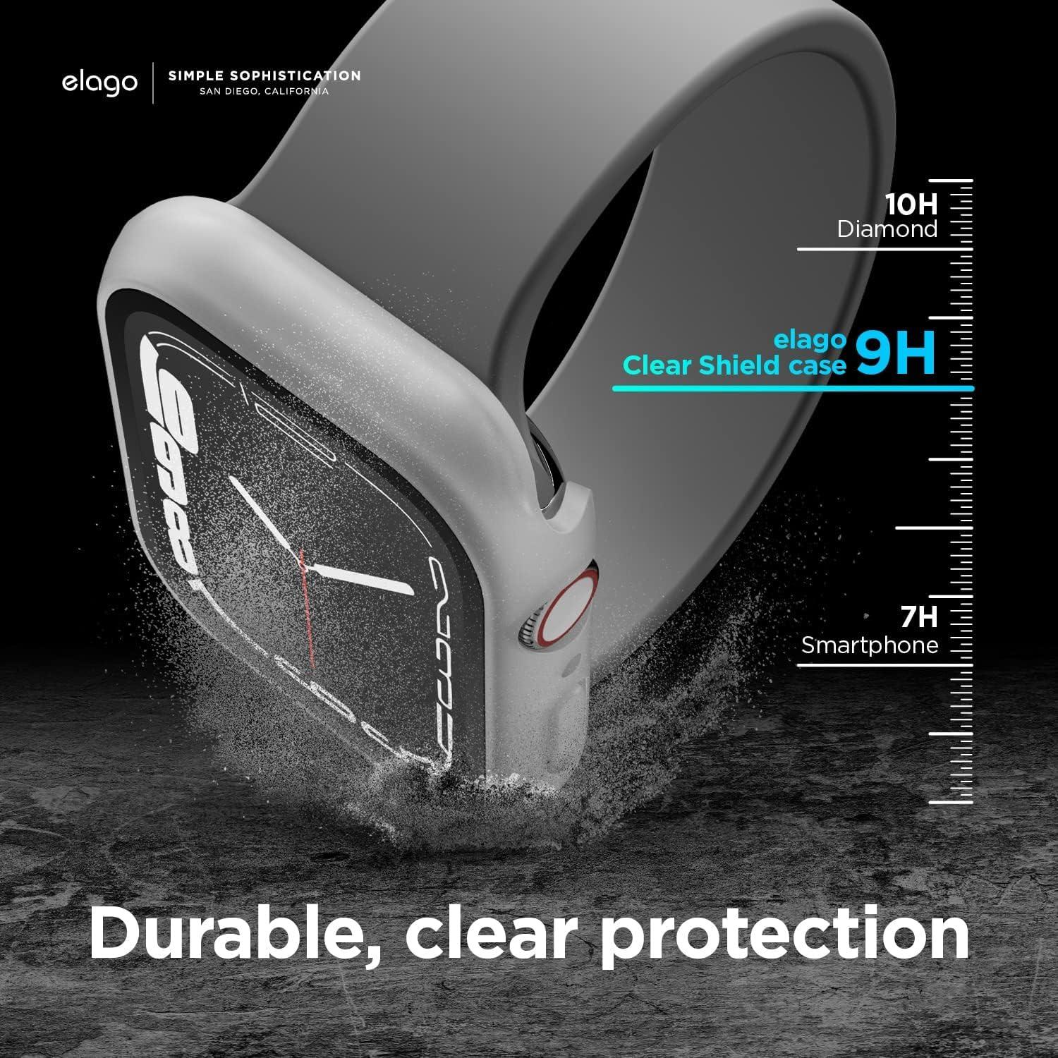 PROTECT IN STYLE WITH THE new elago Clear Shield case. Made from DURABLE POLYCARBONATE, the case protects your watch from EVERYDAY USE – including DIRT, DUST, OILS, and SCRATCHES.