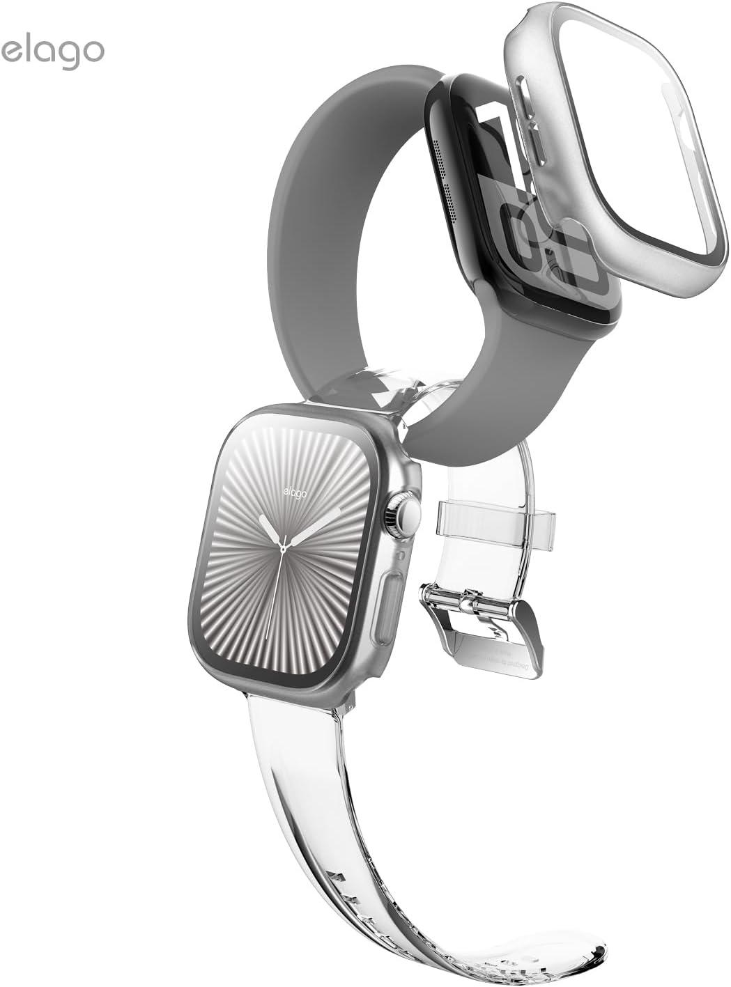 elago compatible with Apple Watch 10 Case, Screen Protector, Clear Shield, Full Protection, Hard PC + Tempered Glass(Clear)