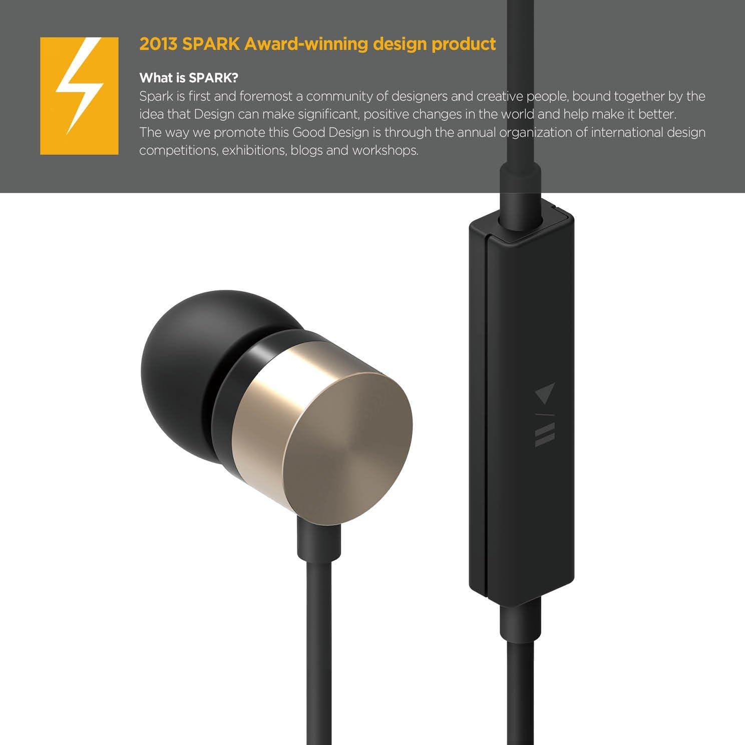 elago E502M Control Talk in-Ear Earphones with Mic Stereo 3.5mm Plug - Carrying Case Included (Control-Talk with Built in Microphone) (Champagne Gold/Black)
