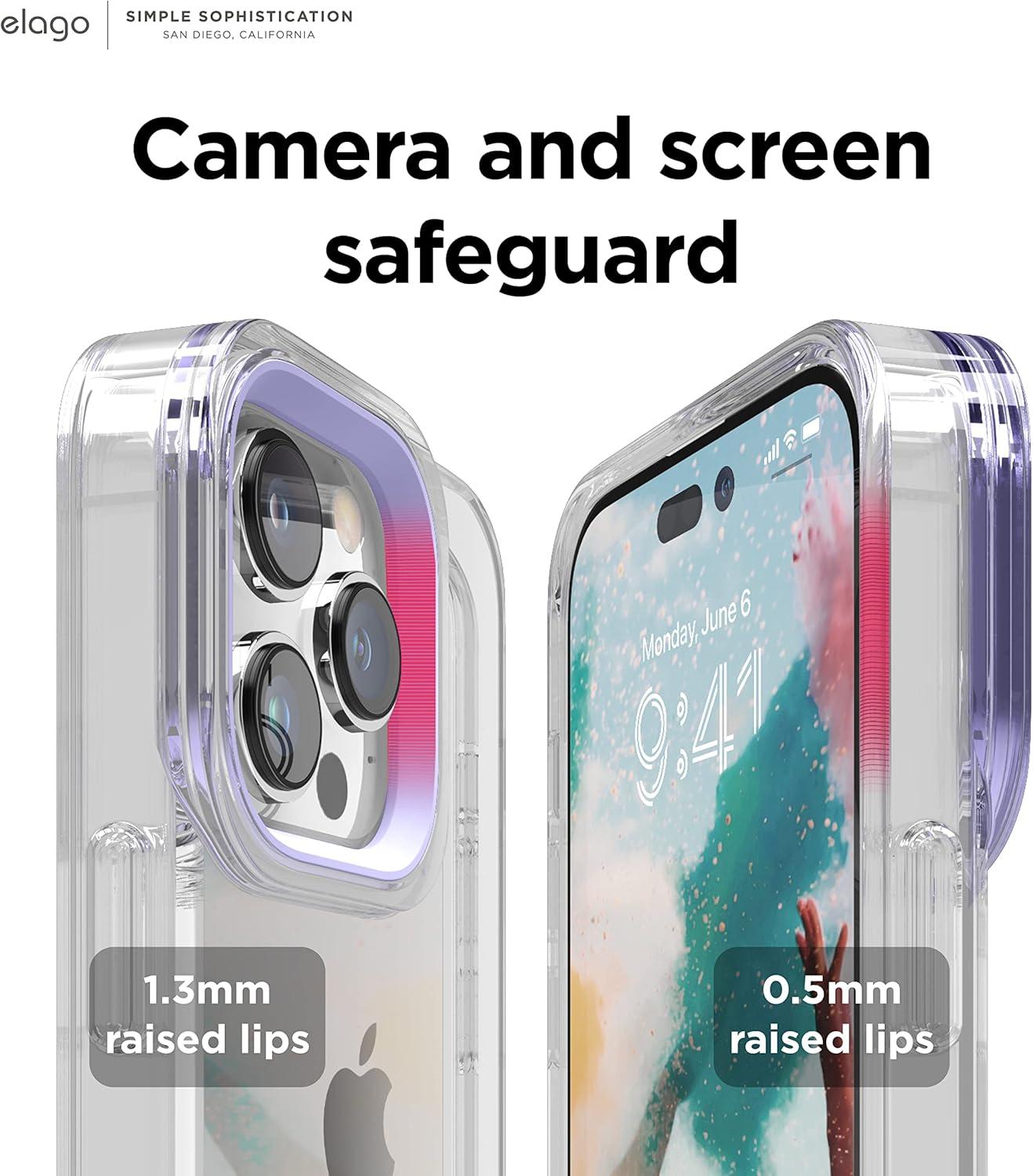 elago Glide Armor Case Designed for iPhone 14 Pro Max Case, Drop Protection, Shockproof Protective TPU Cover, Upgraded Shockproof, Mix and Match Parts, Enhanced Camera Guard [Clear/Lovely Pink](Clear-Purple)