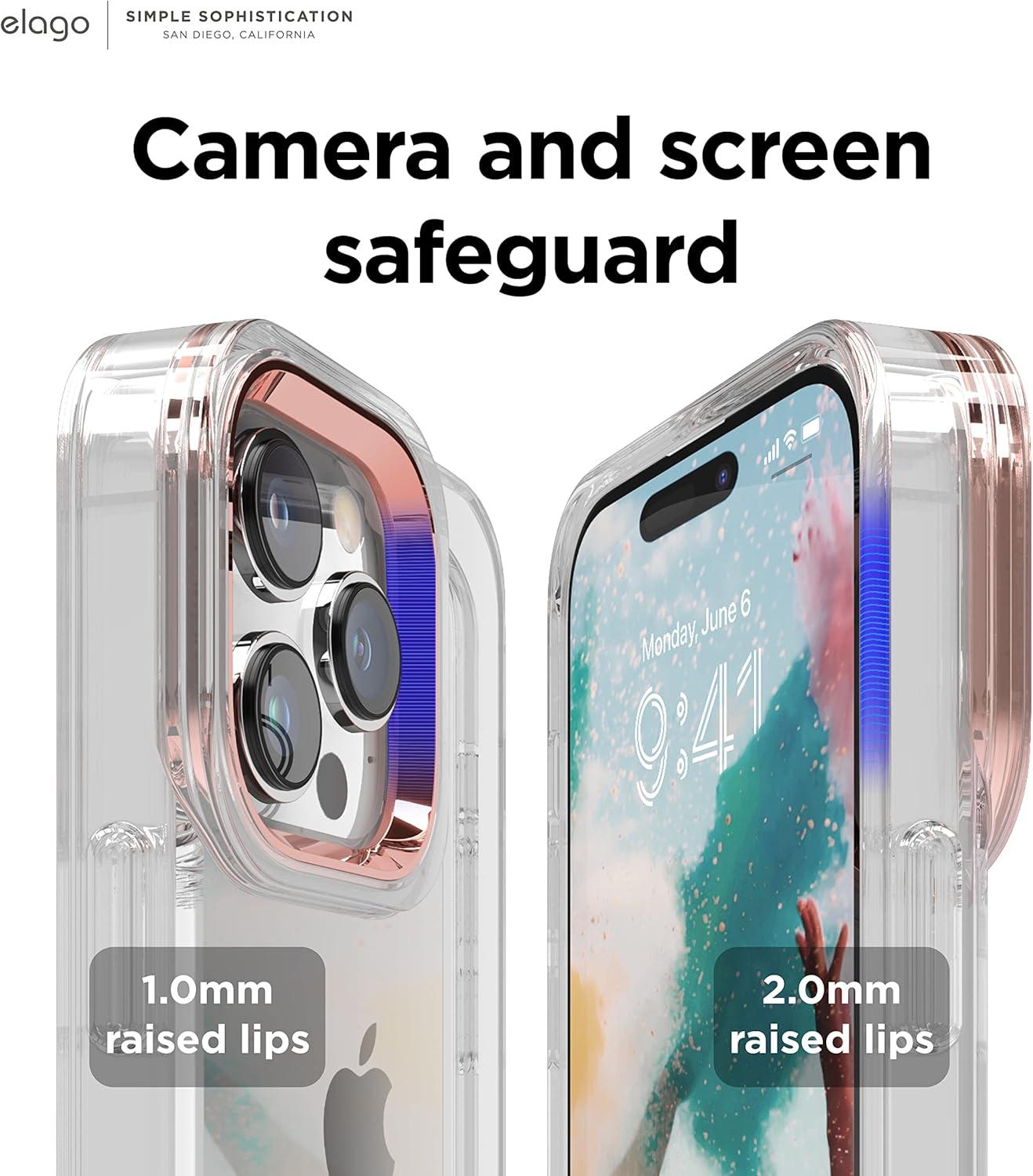 elago Glide Armor Case Designed for iPhone 14 Pro Max Case, Drop Protection, Shockproof Protective TPU Cover, Upgraded Shockproof, Mix and Match Parts, Enhanced Camera Guard [Clear/Lovely Pink](Clear-Rose Gold)
