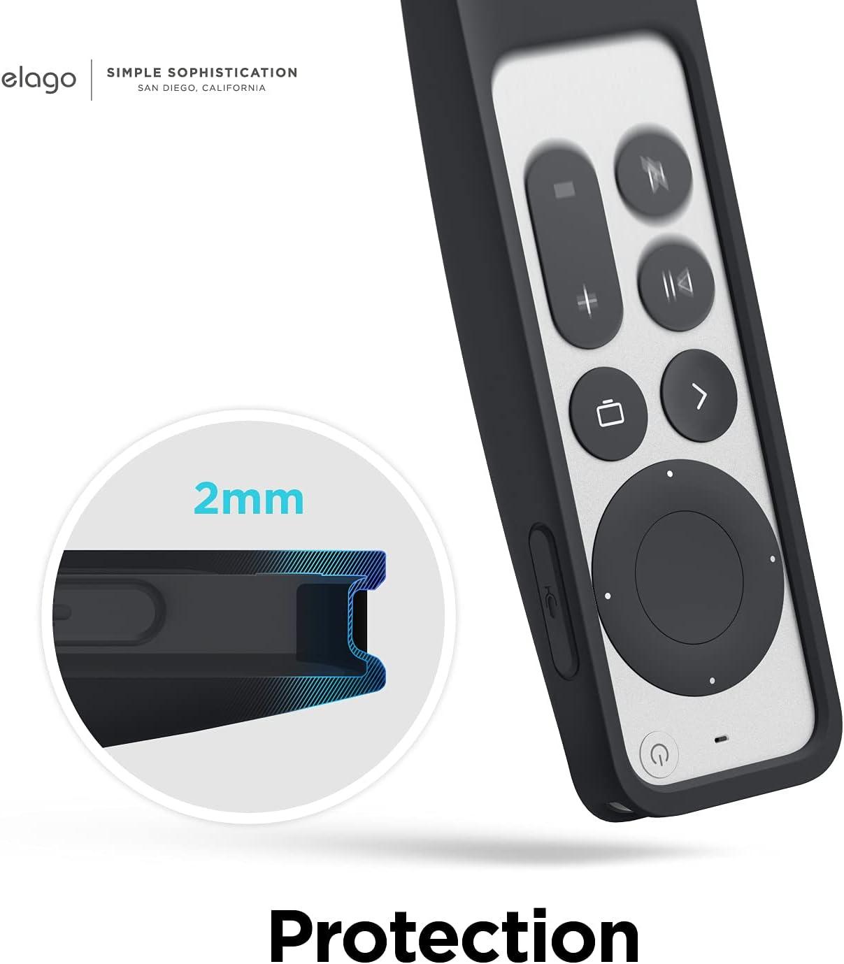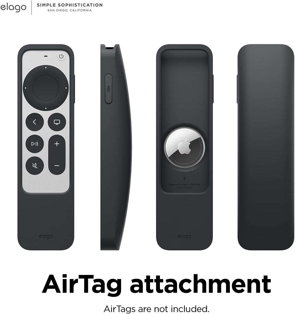 UNLIKE OTHER GENERIC CASES THAT offer low quality materials and mediocre shock protection, the elago 2022 and 2021 R5 Intelli Case case is made with a THICK LAYER OF PREMIUM SILICONE that PROTECTS your Apple TV remote from drops and other mishaps from daily use. The R5 has an ADDED SLOT to make this case COMPATIBLE WITH APPLE AIRTAGS!